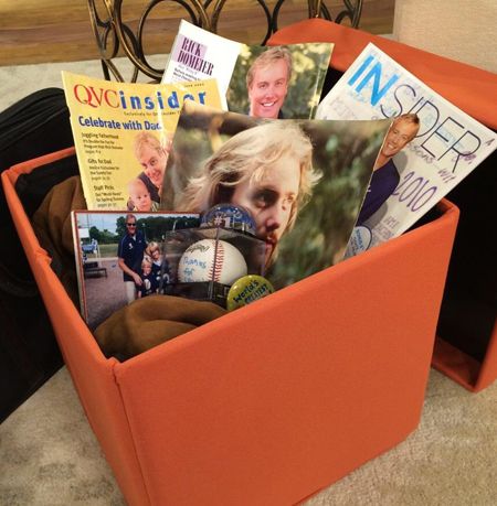 Below you will find four different photos of the Valerie Par Hill ottoman TSV. Each ottoman belongs to one of our QVC hosts containing some items you might find in their ottoman at any given time!