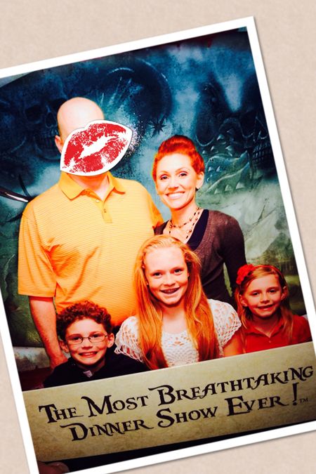 Here is our picture from the Pirate show and dinner... Remember Hubby is not fond of Facebook photos!