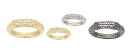 Say hello to the 118 Facet DIAMONIQUE pave cuff and ring. Both of these dazzling pieces are available in sterling silver, blackened silver, rose gold clad and yellow gold clad. Stack your arm with these cuffs and give your hand the same special treatment with the rings.