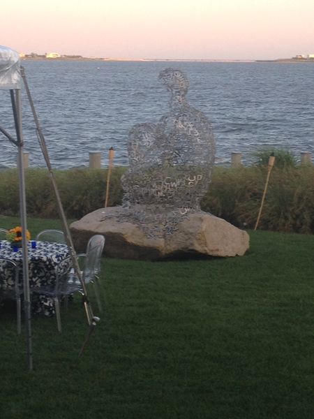 This sculpture is made up entirely of individual letters. It looks so elegant next to all of the trees.