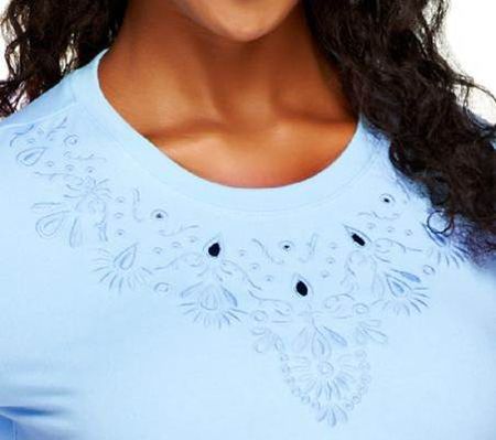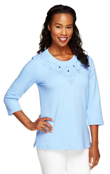 Denim and Company Knit 3/4 Sleeve Top with Embroidery (A256318)