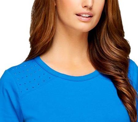 Denim and Company Perfect Jersey 3/4 Sleeve Top with Stud Detail (A256321)