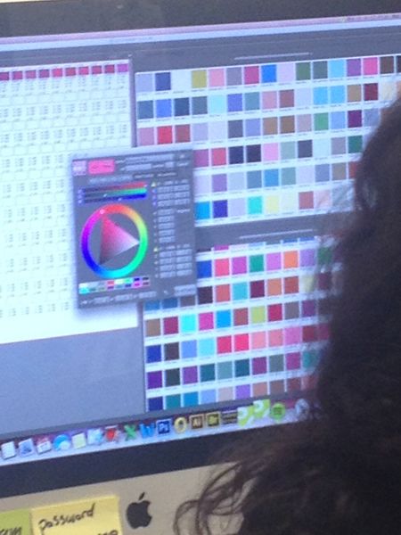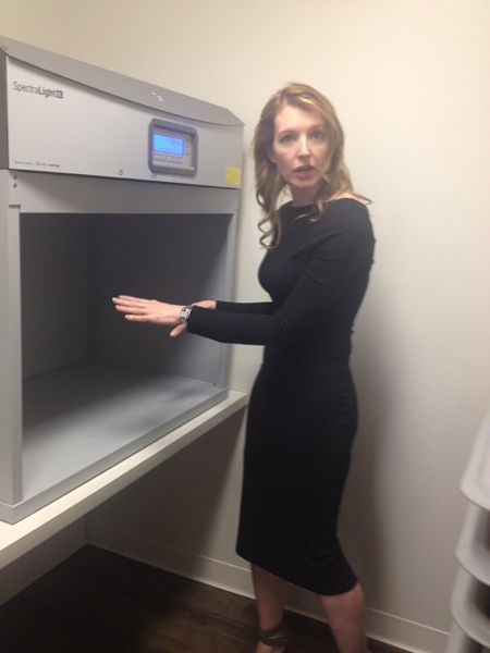 Christina is showing us a light box..this is used to match color for all locations from the design studio to the factory to the Q...