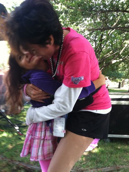 When I read it, I was overwhelmed. I thought about Isabella; I thought about her daughter; and, I needed to know her story. So, I asked. She was diagnosed at 30 with a very aggressive form of breast cancer. She had chemo & a double mastectomy followed by radiation. She is 31, closing in on one year cancer-free and awaiting reconstruction. I was grateful to walk into the closing ceremony, hand-in-hand with Amanda, the Panda, my inspiration!