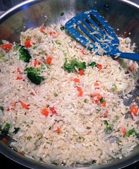 I saw a version of this recipe several years ago online. Since then, I've tweaked it to include ingredients my family likes. Even if you think it sounds strange, I highly recommend you try it. No one in my family can tell the difference between the taste of real fried rice and this cauliflower dish. In fact, this is one of my family's favorite meals. I always make extra because my daughters' love taking it to school in a thermos for lunch. It makes me feel good to see both kids to eating giant bowls of vegetables.