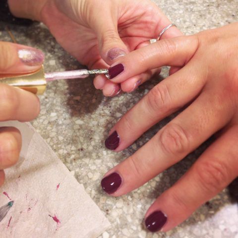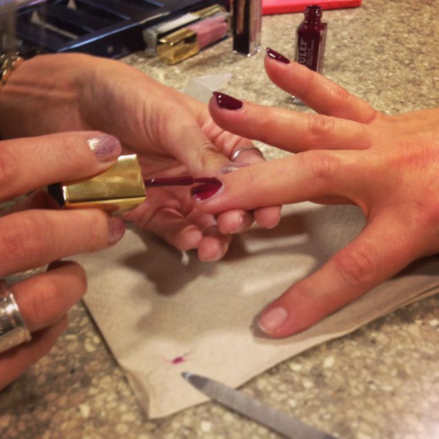 Alicia started by using two coats of “Peace,” a deep raspberry crème shade.
