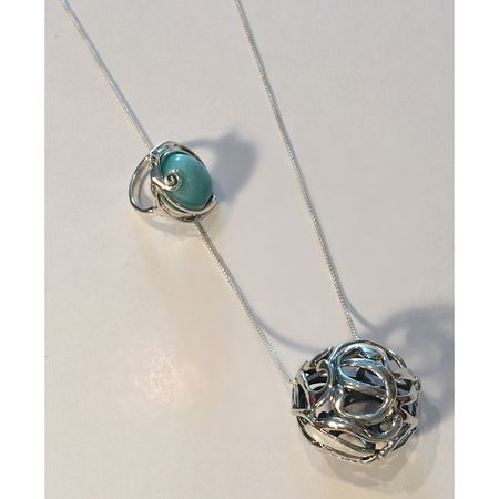 {Sterling Silver in -the -round Pendant / yes, that is my new over-sized cabochon of amazonite ring … not to be missed}