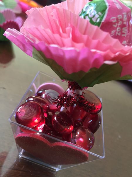- Place sticky tack in bottom of cube and secure lollipop to bottom.