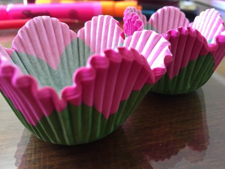 - Fold liners in half and half again... Snip small cut off of bottom of liner to insert lollipop.
