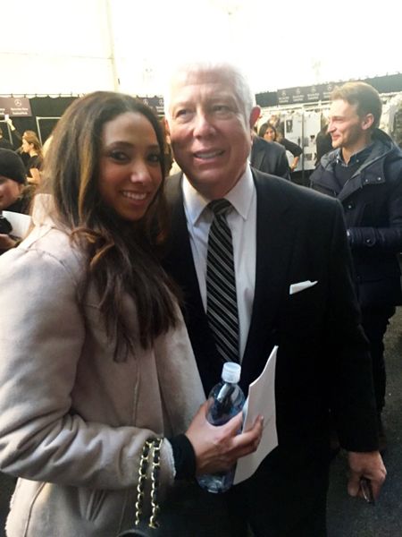 After make-up I was ready to head back to Lincoln Center for another show. This time to see the collection of designer Michael Costello. You may remember that name if you’re a fan of Project Runway. He was featured on season 8 and the first all-stars season. While he didn’t win his seasons, his designs were a stand out on the runway. Michael has become a red carpet go to for many celebrities (he designed Beyoncé’s Grammy dress last year) and I’m a big fan. I was able to score an invite for Juddy too so he could be my blog photog for the day. The show featured sexy and sensual body conscious pieces in shades of black, grey and silver. There were lots of plunging necklines, thigh high slits and strategic cut outs. Some of my favorite pieces included a long sleeve mini dress with a full skirt and a one shoulder maxi dress. And you know I love a good jumpsuit and Michael featured a well cut black number with an exaggerated shoulder and deep-v plunge neckline. I was hoping to meet Michael but there was such a rush of people heading backstage that security closed off access. While I didn’t get to meet Michael I did meet Jeannie Mai and Adrienne Bailon from the talk show The Real. I also met stylist and designer Emily B and caught a glimpse of Christina Milian and singer Chris Brown.