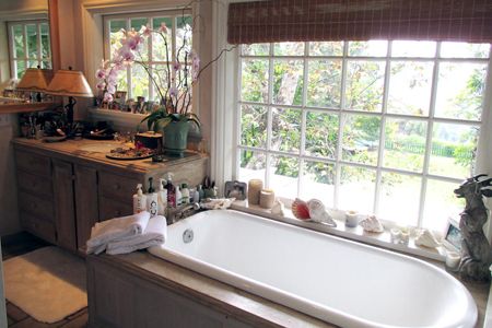 Ok, we have to start with the tub in the master bathroom because it is hands down, the most fabulous spot in the whole house. It's longer than a standard tub and I use it every night!