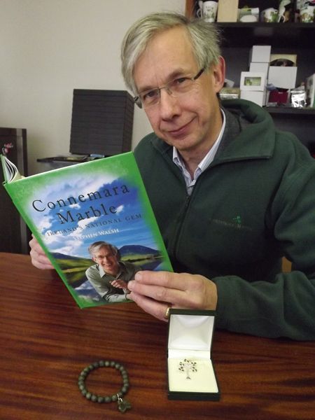 Whilst writing my book on The History of Connemara Marble, I found one of the earliest souvenirs created from Connemara marble. Dating from the 19th Century, these little shamrock charms were made in simple workshops and sold to the early tourists who came to visit Connemara . In later years soldiers going into battle used to carry these charms with them to keep them safe.