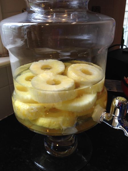 Cut the pineapples and place in a large glass jar. Pour entire bottle of vodka over pineapple and let sit for 7 to 10 days (no refrigeration needed).