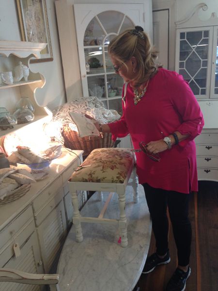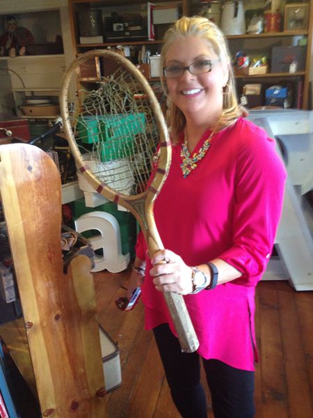 I think of antiquing as treasure hunting. I love unique items with a bit of history, and you never know what you'll find when you start looking. From a tennis racket to surprise Jayne at our upcoming tennis lesson to linen sachets, jewelry, and old fashioned carriages, to interesting garden tools and oversized chairs—can you imagine the size of the table? It was so interesting to pick and poke through items I couldn't find elsewhere.