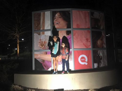 My poor husband had to pack up both kids into the car and drive my shoes out to the QVC studio. (If you’re reading this – THANKS AGAIN!) I was feeling a little guilty on top of the excitement and nerves, but he assured me that I would do the same for him. Then to make me feel better he texted me this picture of my girls outside the building. It made me laugh and calmed my nerves to see my “home team” was cheering me on!