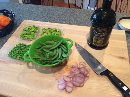 Cook until bright green, about 2 minutes. Add fava beans and peas and cook until warned, about 1 minutes more.