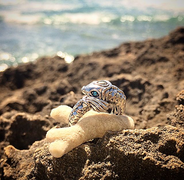I chose blue topaz as the color of the eyes of the Koi designs to reflect the crystal blue waters of the sea.