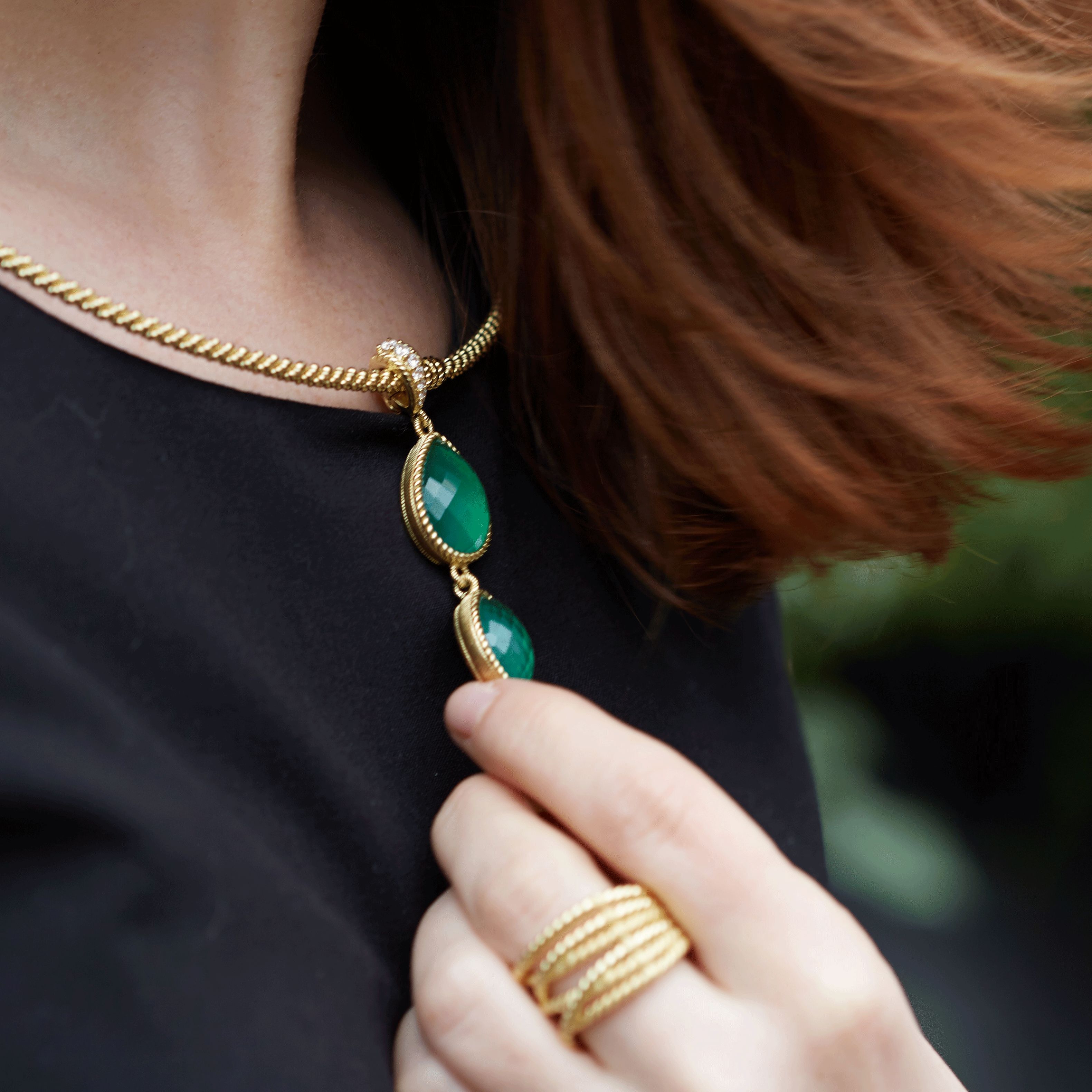 I’ve also designed a collar necklace that will quickly become one of your new favorites. This collar style is very of-the-moment, and you can wear the necklace on its own without any enhancers. I’ve also designed different enhancers so that you can further tailor this piece to your personal taste I love the movement of these, the way the colors shine, and how the doublets glow.